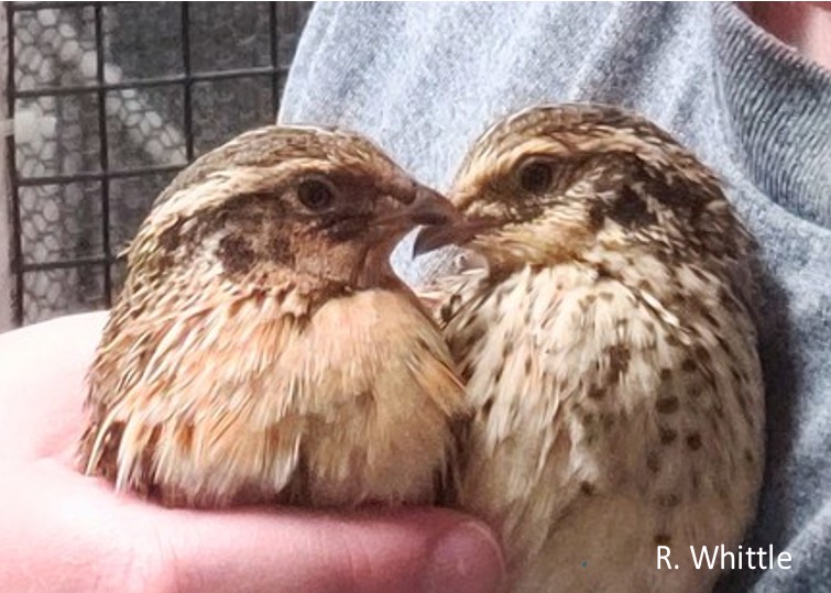 Japanese quail (Corturnix corturnix japonica) are the smallest farmed birds and contribute to approximately 10% and 0.2% of the global table egg and meat markets (Lukanov, 2019). They were domesticated from Japanese quail endemic to East Asia, including Japan, South Korea, China and Mongolia. They are known to migrate up to 1000km between overwintering and breeding regions. Domesticated Japanese quail were selected for both egg and meat production. Quail hens start laying at 7 weeks, and lay up to 260 eggs a year. Meat processing occurs at around 5 weeks making the reproductive and production cycle short (Prabakaran, 2003), Females are generally larger than males and have speckled feathers, whereas males have fawn brown chest feathers (Prabakaran, 2003).
