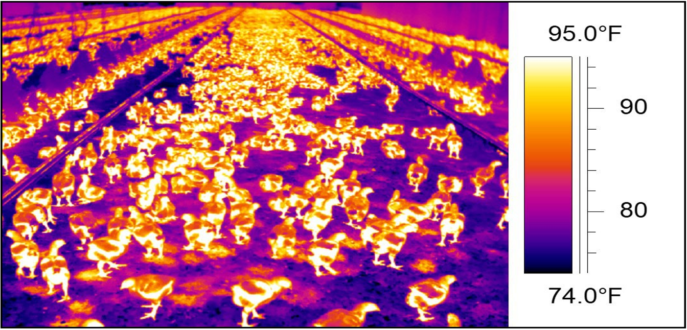 Figure 3. Thermal image illustrating floor heating because of the birds sitting on the litter