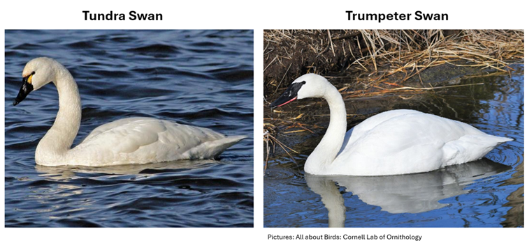 For this article, I am focusing only on migratory swans, which include the tundra swan and trumpeter swan. The mute swan inhabits many landscapes across the US and is the most recognizable, but it’s actually a non-native introduced species from the UK. The mute swan undoubtedly plays a role in the larger picture of HPAI on the landscape outside of the winter, similar to that of resident geese during the summer months.