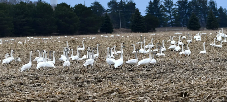 Figure 2. An aggregation of tundra swans during the winter feeding and roosting within waste grain